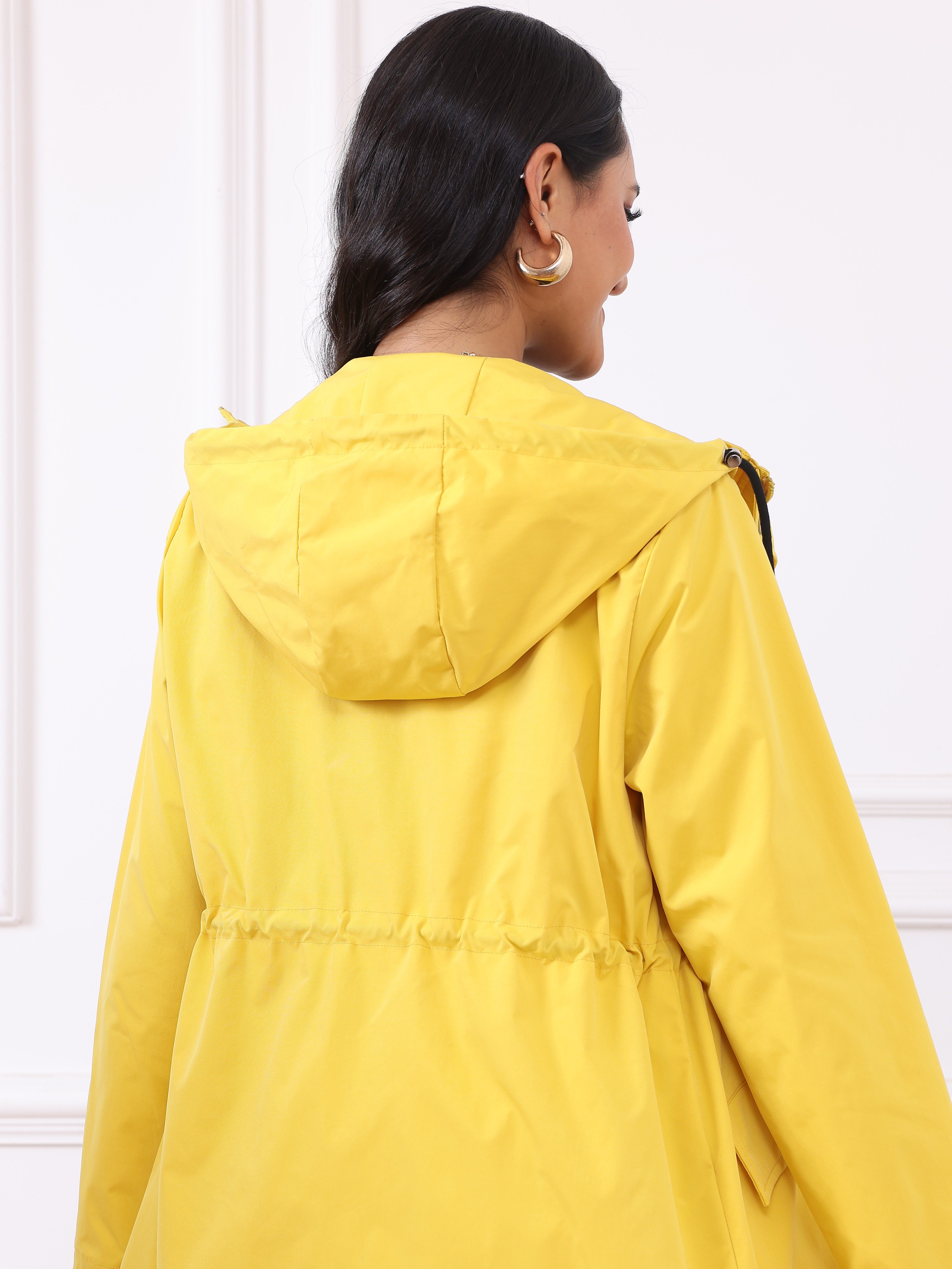 Chic Plus Size Hooded Windbreaker - Casual Solid Color, Drawstring Detail, Machine Washable - Perfect For Spring/Fall