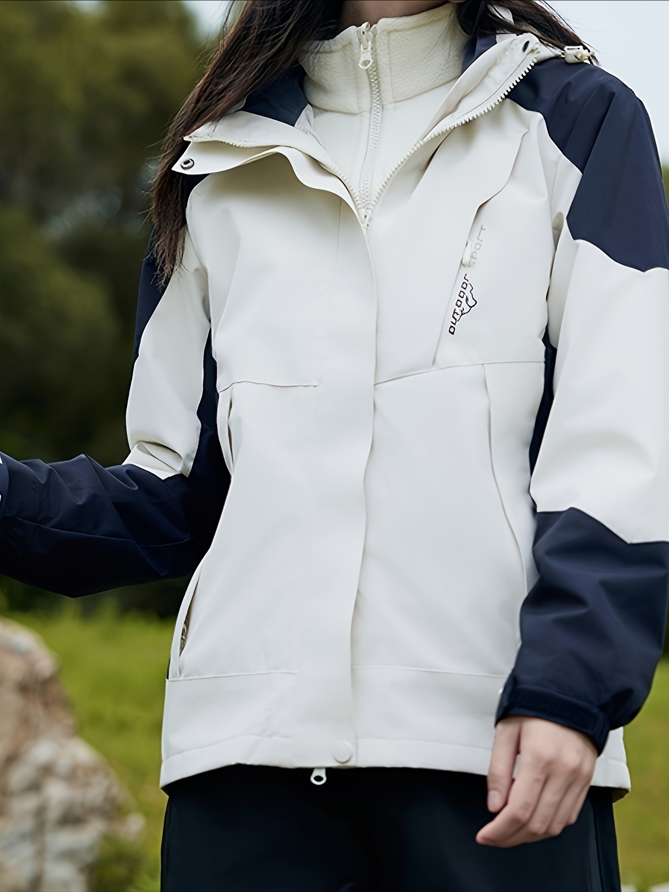 Plus Size Women's Fashion Hooded Jacket - Stylish Color Block Design, Long Sleeve with Adjustable Drawstring Waist, Water-Resistant and Breathable Fabric for Outdoor Enthusiasts, Perfect for Fall and Winter Activities
