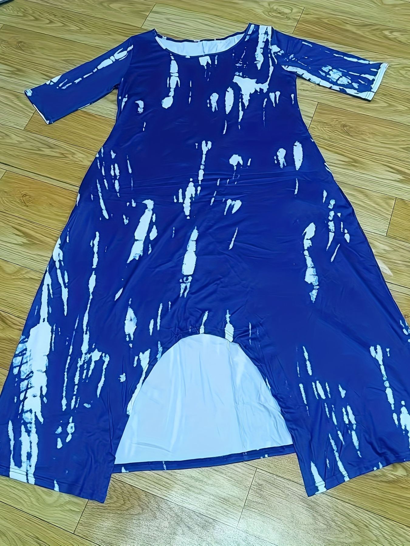 Plus Size Tie Dye Loose Dress, Elegant Half Sleeve Split Dress For Spring & Summer, Women's Plus Size Clothing