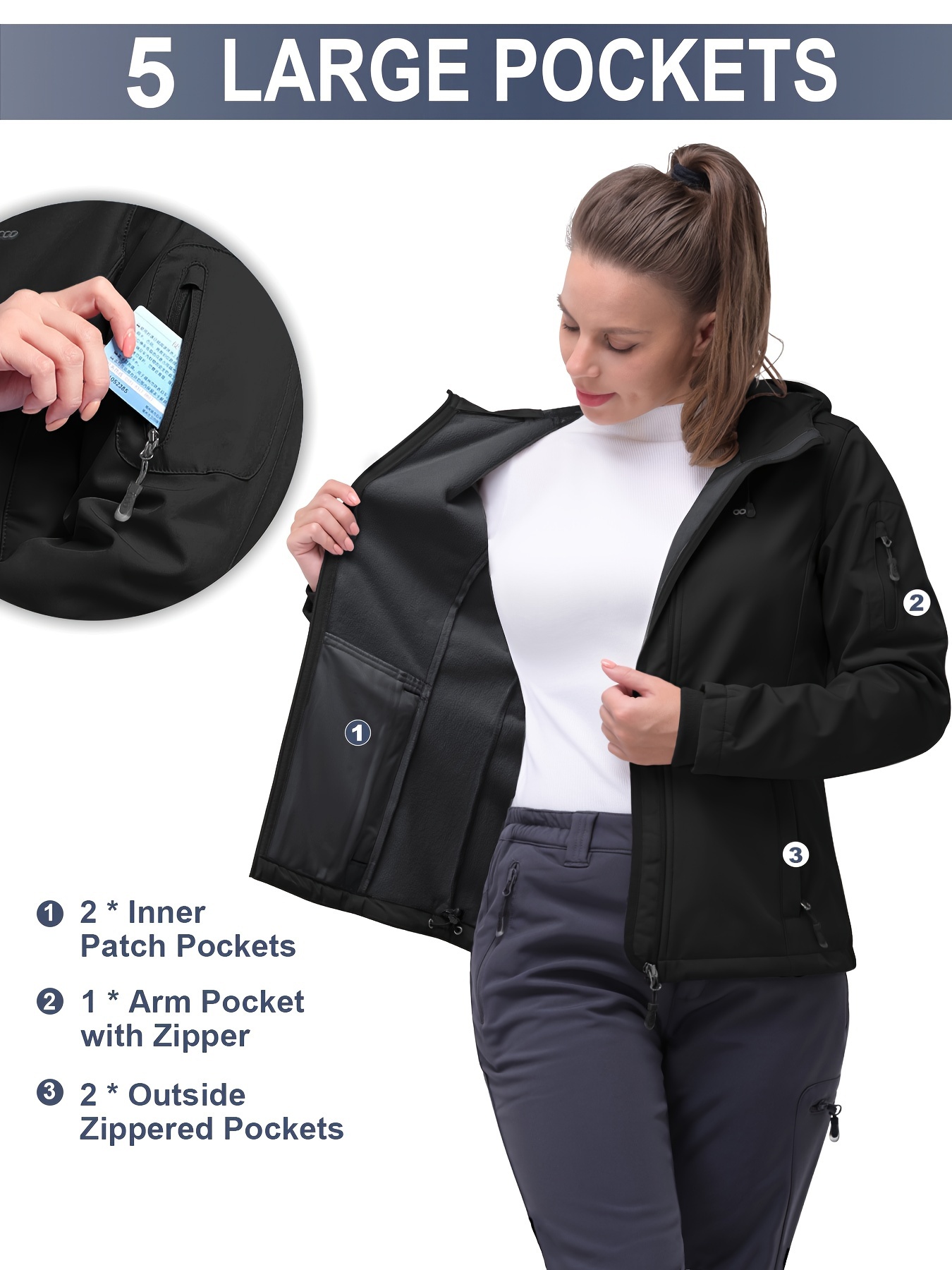 Softshell Jacket for Women, Casual Plush Lined Warm Hooded Windproof Coat with Adjustable Hood and Drawcord Hem for Winter Fall Outdoor Hiking