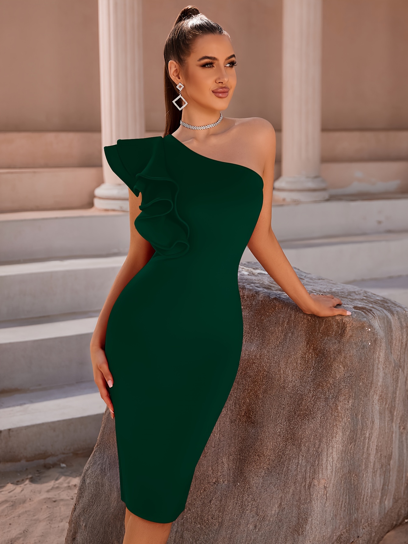 Sophisticated One Shoulder Bodycon Dress - Vibrant Solid Color, Chic Design, Perfect for Formal Occasions, Weddings, and Special Events - Ideal for Ladies, Girls, and Female Fashion Enthusiasts, Womens Clothing