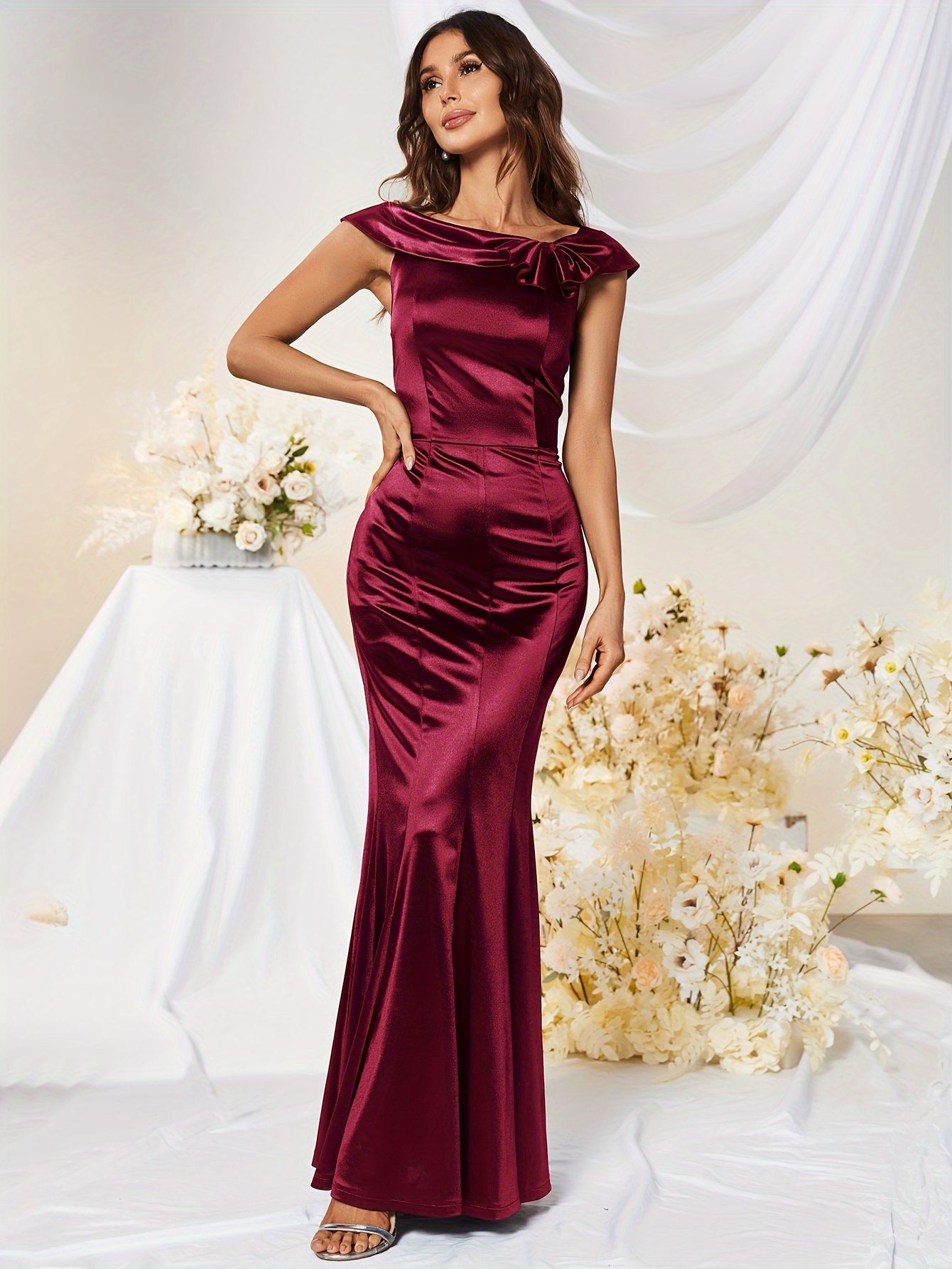 Bodycon Solid Mermaid Dress, Elegant Short Sleeve Dress For Party & Banquet, Women's Clothing