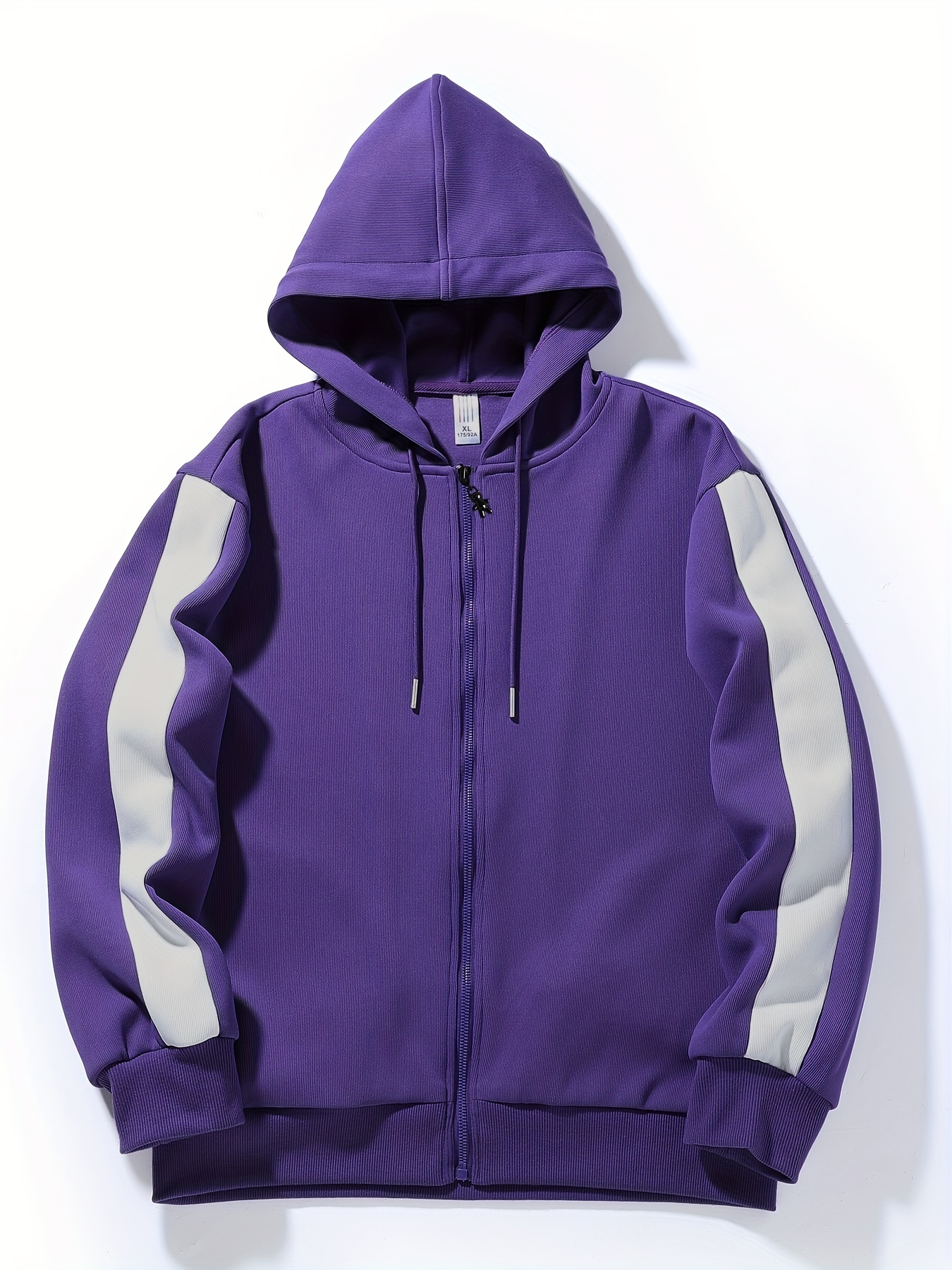 Chic Plus Size Women's Hooded Jacket - Color Block, Zip-Up Outdoor Coat With Drawstring & Pockets For Fall/Winter