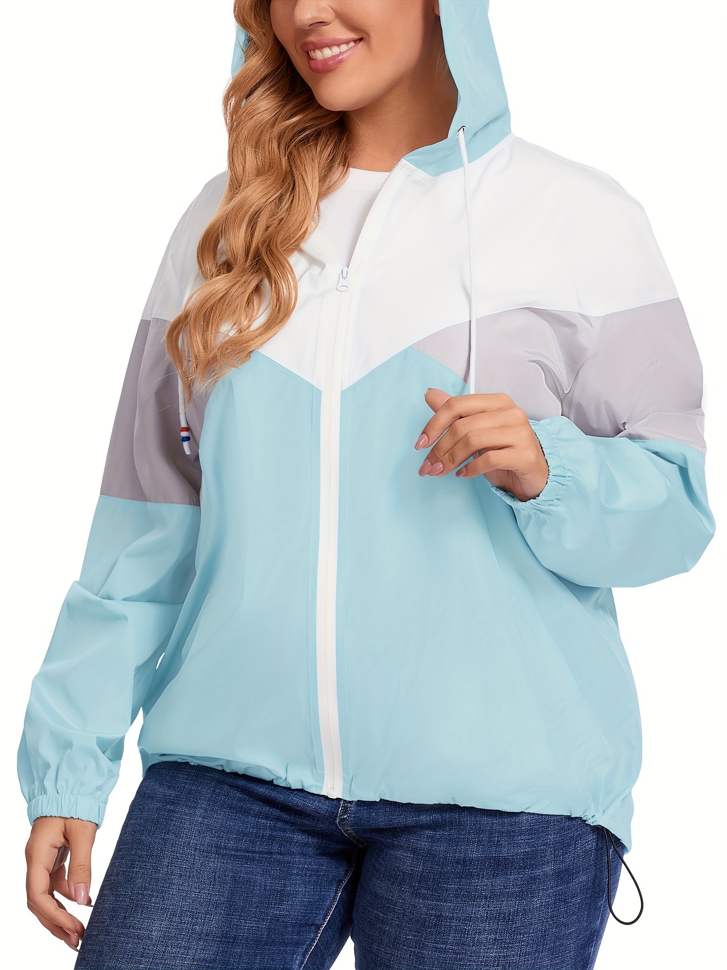 Plus Size Raincoat, Women Water Resistant Rain Jacket, Packable, Outdoor Hooded Windbreaker For Women