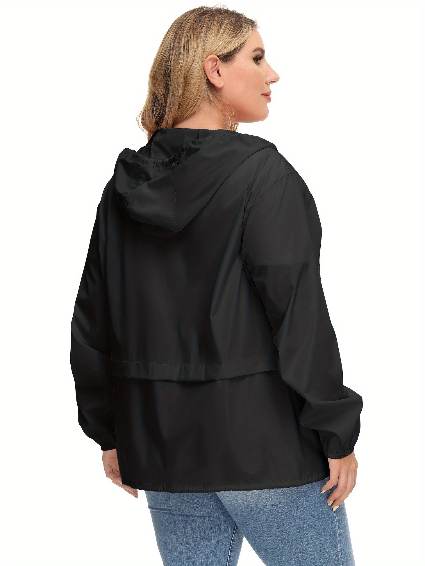 Plus Size Raincoat Women Water Resistant Rain Jacket Packable Outdoor Hooded Windbreaker