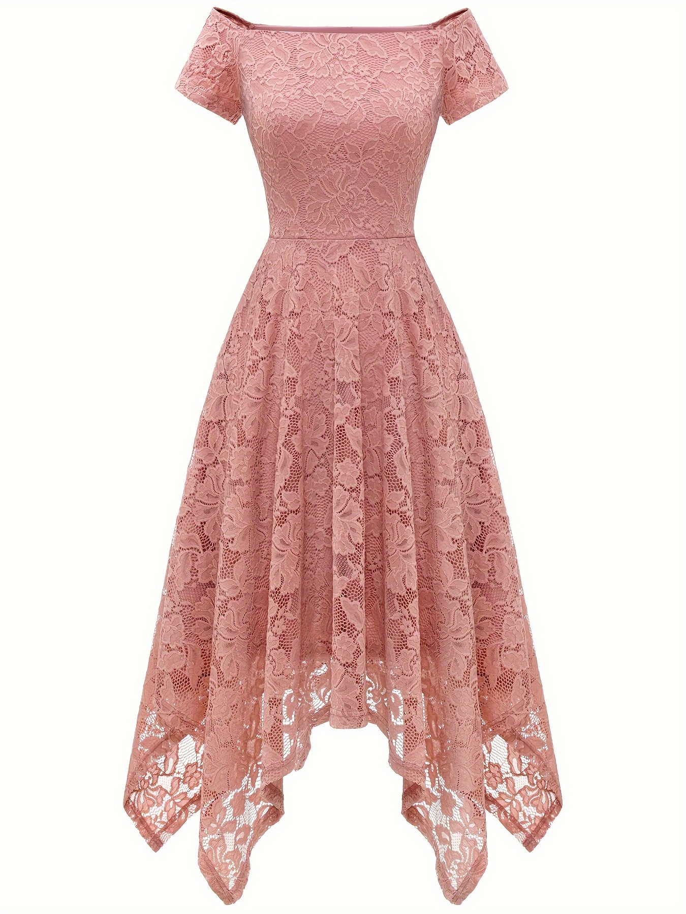 Women's Lace Cocktail Dress Hi-Lo Off Shoulder Bridesmaid Swing Formal Party Dress